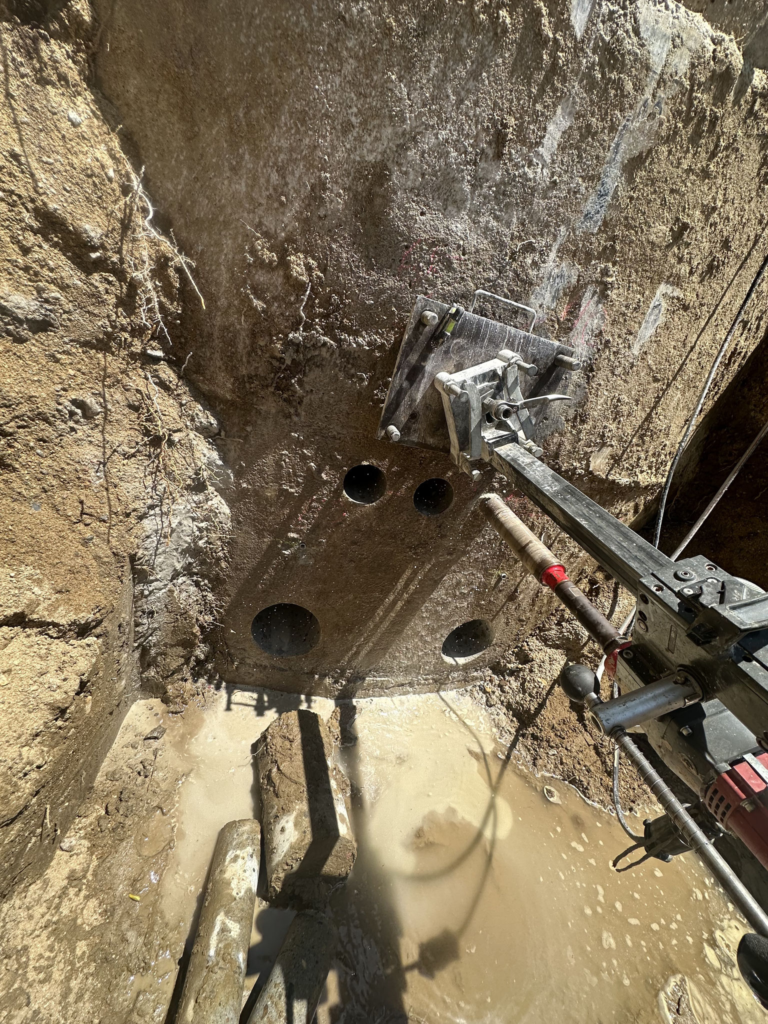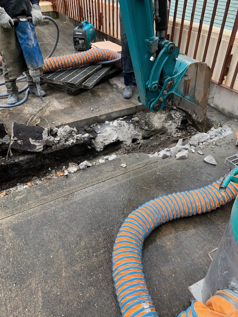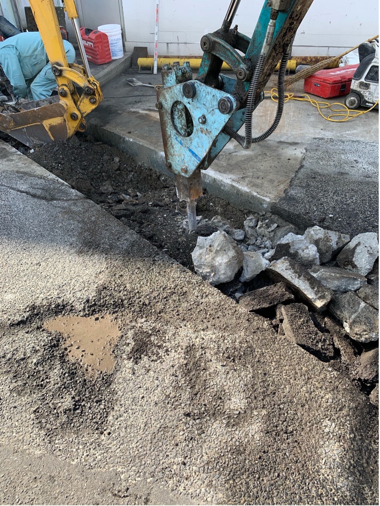 水道、電気、下水、ガス設備の配管や基礎の解体・小割作業、小さな口径から大きな口径まで対応可能です。